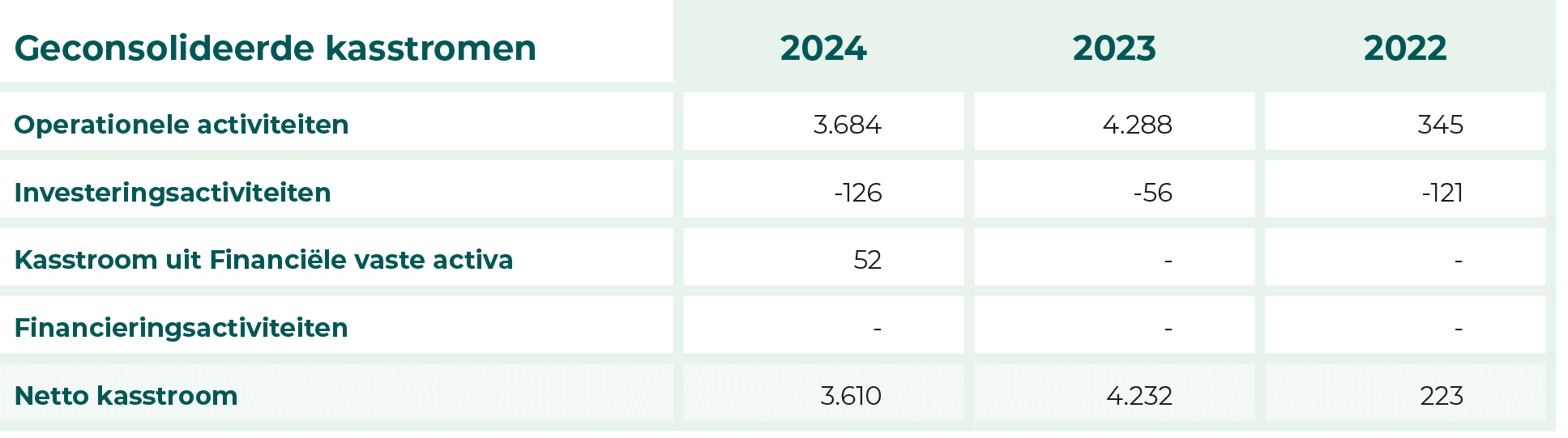 Uit bovenstaand overzicht blijkt dat het saldo geldmiddelen per 31-12-2024 nagenoeg stabiel is ten opzichte is van het begin van het jaar.